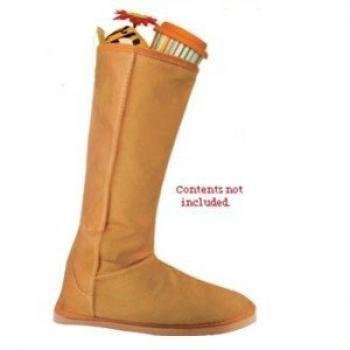 Photographic image looks like a real winter boot Measures 19 by 15-inch Stylish holiday christmas boot stocking Made from cloth and lightweight Contents inside of boot not included